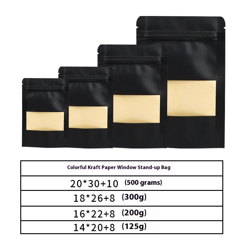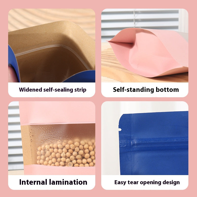 50 pcs Colorful Kraft Bags with Window Stand Up Ziplock Seal Paper Bag Resealable Food Storage Pouch