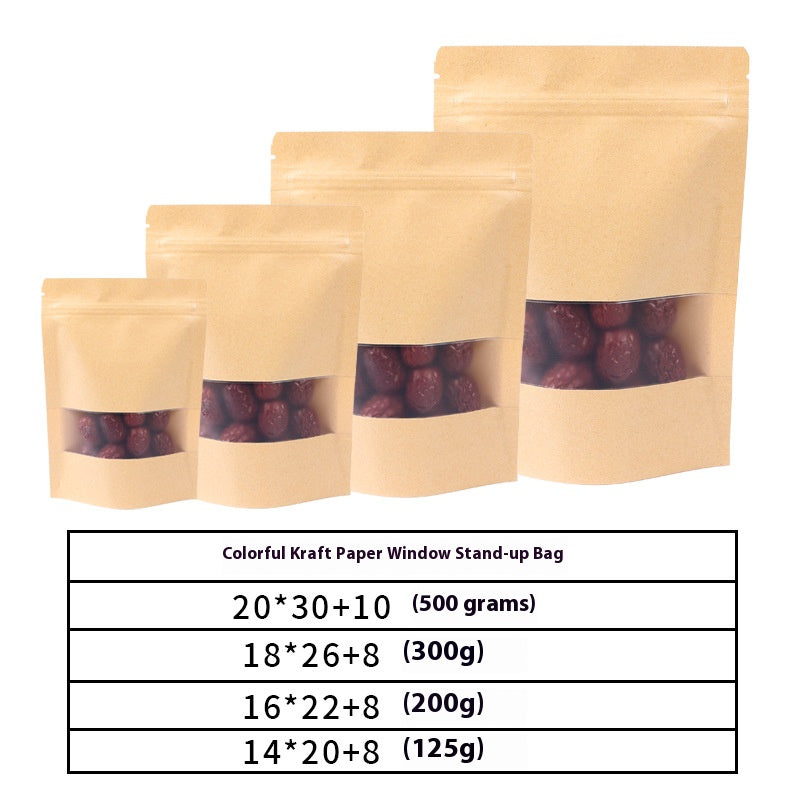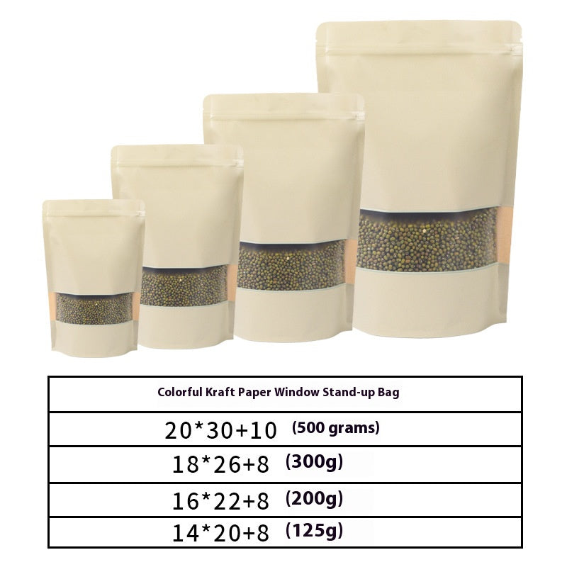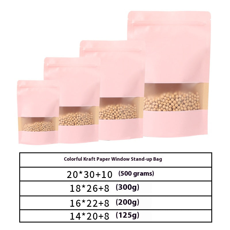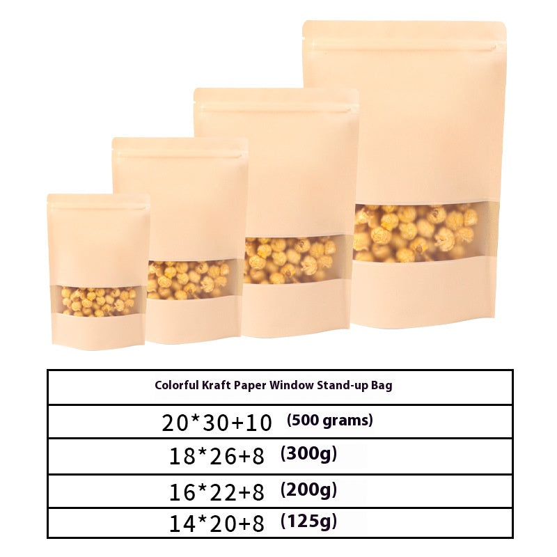 These 50 colorful kraft bags feature a clear window and a stand-up design with a ziplock seal, making them ideal for resealable food storage. Crafted from durable paper, they combine eco-friendly material with convenience, allowing easy visibility of contents while preserving freshness. Perfect for packaging snacks, dried goods, or homemade treats with professional reliability.
