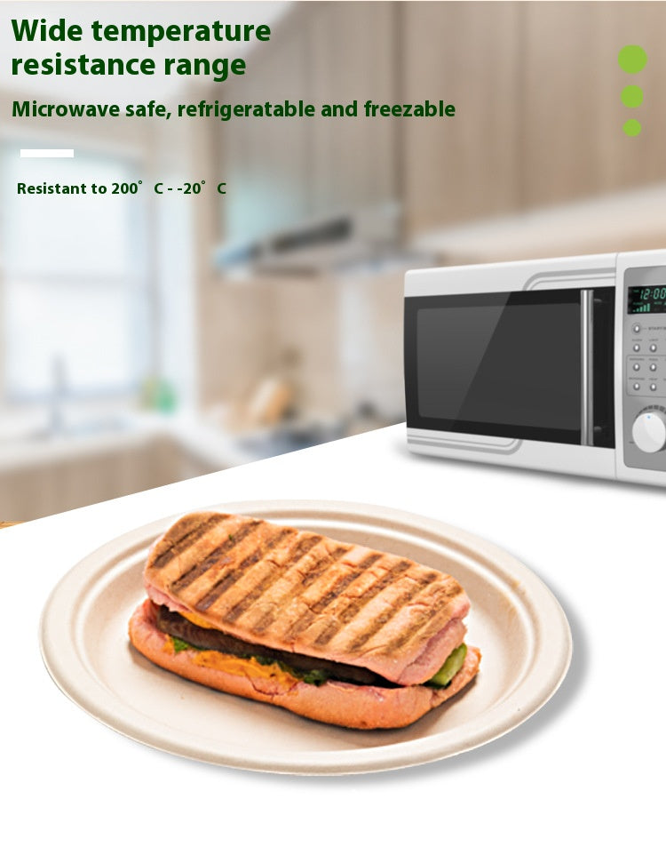 These 50 natural color disposable paper plates are made from 100% compostable sugarcane fiber, combining durability and eco-friendliness. Designed for heavy-duty use, they provide reliable performance for serving meals while minimizing environmental impact. Ideal for both everyday use and events, these plates break down naturally after disposal, supporting sustainable waste management practices.