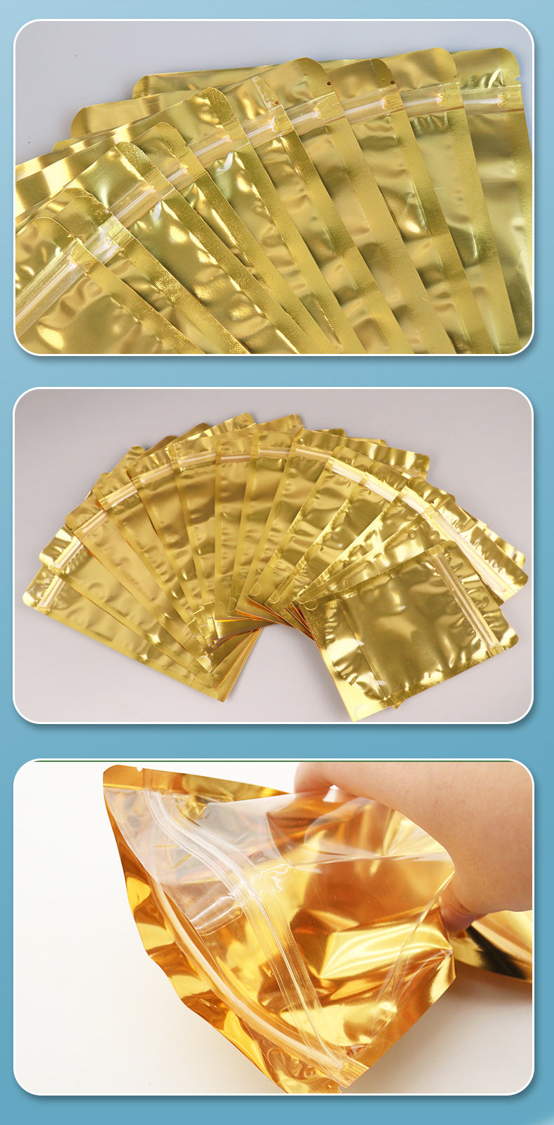 Golden Aluminum Stand-Up Resealable Bag 50pcs for Food Self Sealing Storage