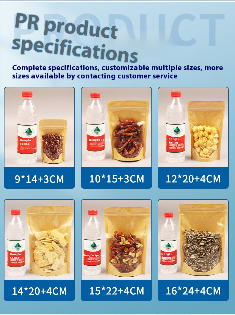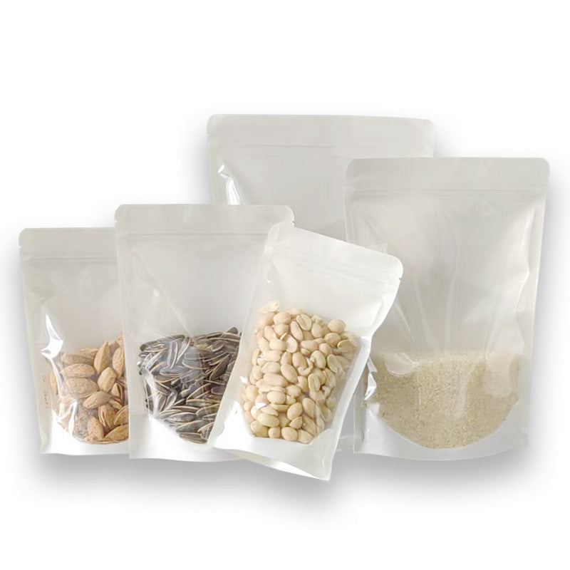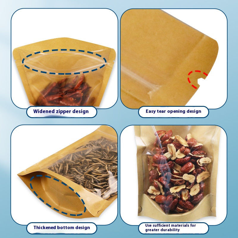 50pcs of Resealable Stand Up Kraft Bags with Window Clear Front Zipper Lock Food Storage Bags