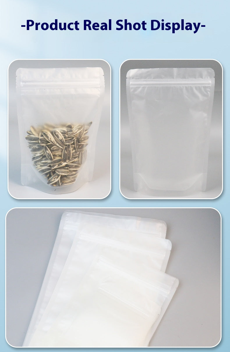 Keeps Food Fresh: Crafted from food-grade, thickened transparent PP material, these bags offer reliable freshness protection. Their stand-up design provides a stable base, effectively keeping the contents from getting damp.