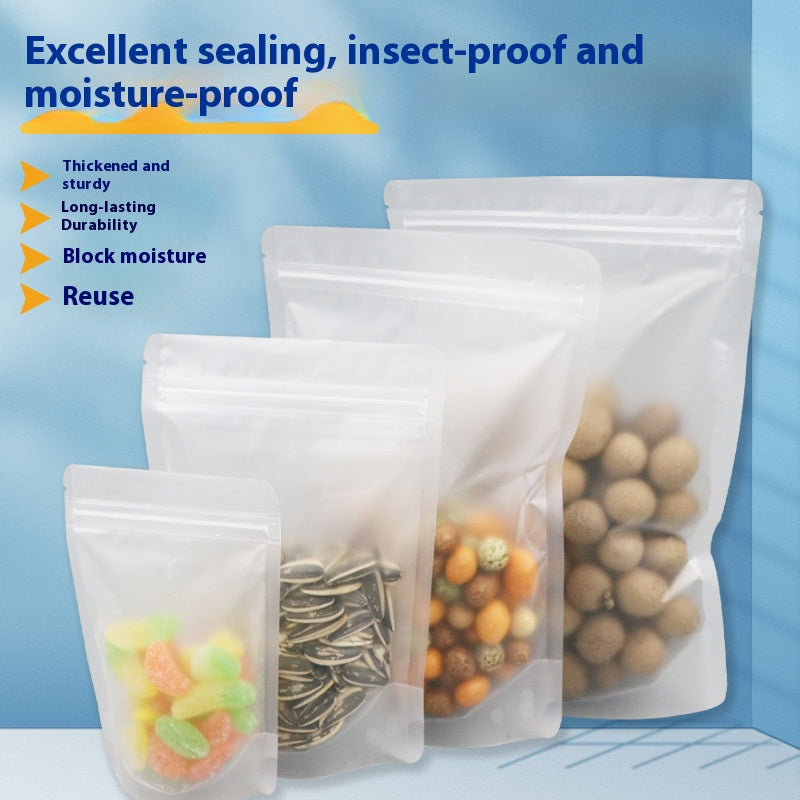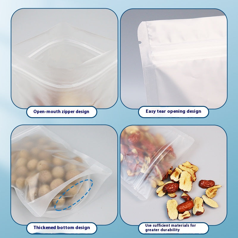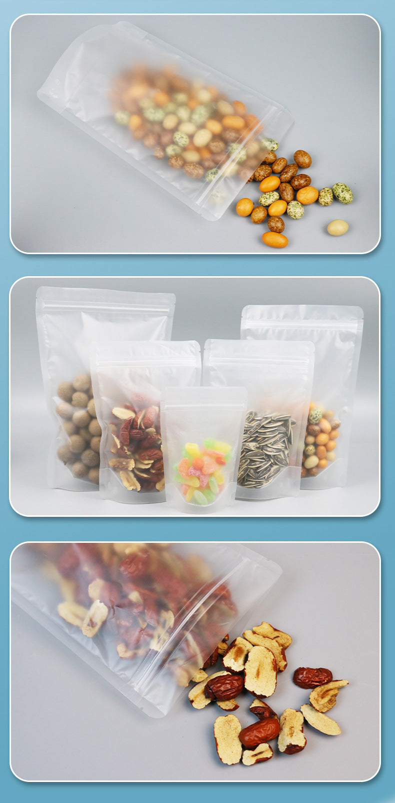 Easy Resealable: Featuring a zipper closure and tear notch, these sandblasted stand-up bags are ideal for packing, storing, and displaying food items. They work perfectly for nuts, fruits, candies, cookies, tea leaves, dried goods, snacks, and more.